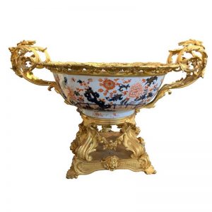 WHite porcelien vessel on brass mount