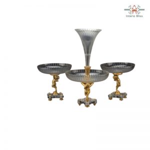 Comprising Two Compotes With Gilt Bronze Figural Putti Standards, Center Trumpet Vase With Removable Attachment To Accommodate Large Glass Bowl . Each Raised On Squared Cut-Glass Bases With Bronze Toupie Feet. Center Standard Nut To Underside Dimension: