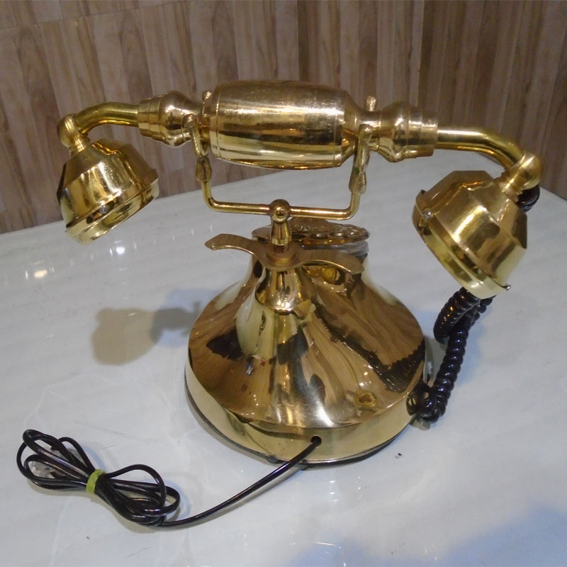 Description- Brass telephone old antique style with manual dialer works perfectly on modern days analog telephonic system, comes with a jack that can be easily fitted into present days telephonic socket.