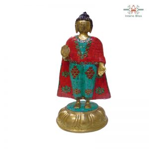 The standing Buddha is indicative of being stationary, with both feet planted firmly side-by-side. During this position, the Buddha has stopped, and the reason for this halt can be determined by the mudra of the hands.This Buddha image embodies the qualities of radiant inner calm and stillness, the products of supreme wisdom.