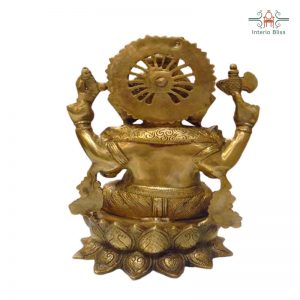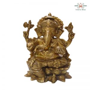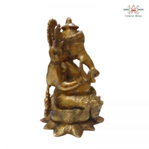 Ganesha Brass idol , in which ganesha is seen sitting on a lotus flower. The extreme fine hand carved traditional designs and tone finish of the idol , make it a best decor item in a pooja room, at any interior of house, office etc,for pooja (Ganesha vandanam) during the start of any new venture .