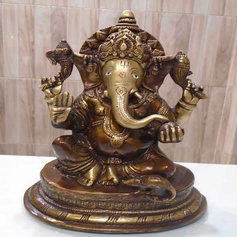 For bringing joy and prosperity and fulfil their dream, brass is the recommended material for a Ganesha idol. This ganesha idol made of brass material makes a perfect idol to place in a interior, ,pooja room which brings fame joy and happiness .