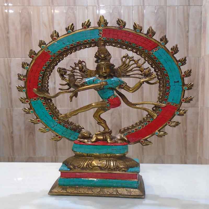 In this idol, made of traditional designs hand-carved, Shiva is seen dancing in the circle of fire, above the demon Apasmara, the ignorance.