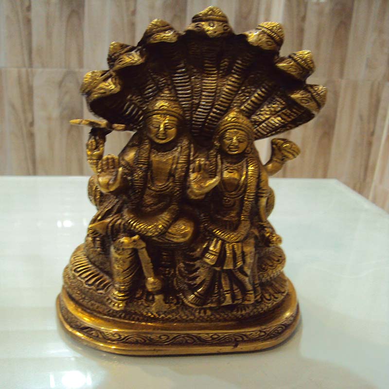 Vishnu Laxmi seated on Sheshnag-Brass Idol