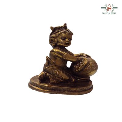 Little Krishna-MakhanChor Brass Idol -coloured