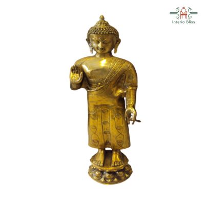 The standing Buddha is indicative of being stationary, with both feet planted firmly side-by-side. During this position, the Buddha has stopped, and the reason for this halt can be determined by the mudra of the hands.This Buddha image embodies the qualities of radiant inner calm and stillness, the products of supreme wisdom.