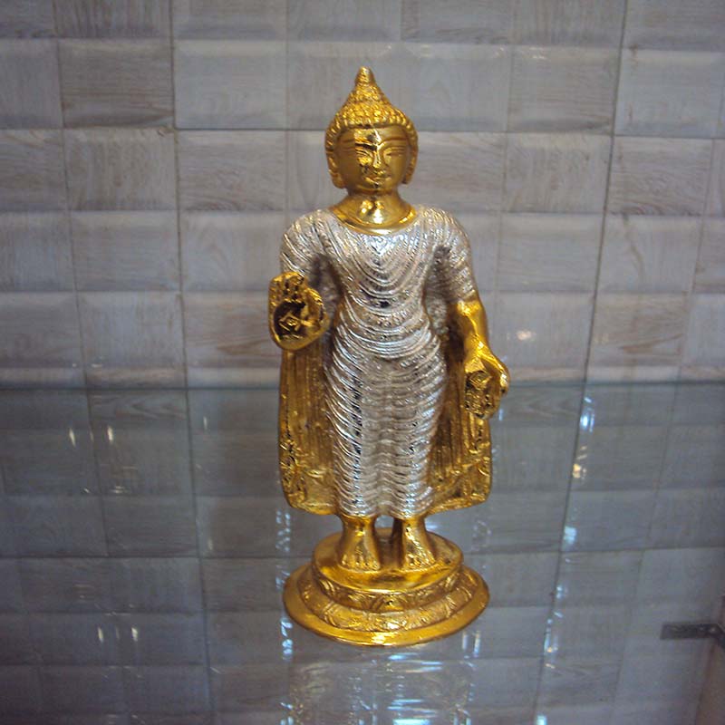 The standing Buddha is indicative of being stationary, with both feet planted firmly side-by-side. During this position, the Buddha has stopped, and the reason for this halt can be determined by the mudra of the hands.This Buddha image embodies the qualities of radiant inner calm and stillness, the products of supreme wisdom.