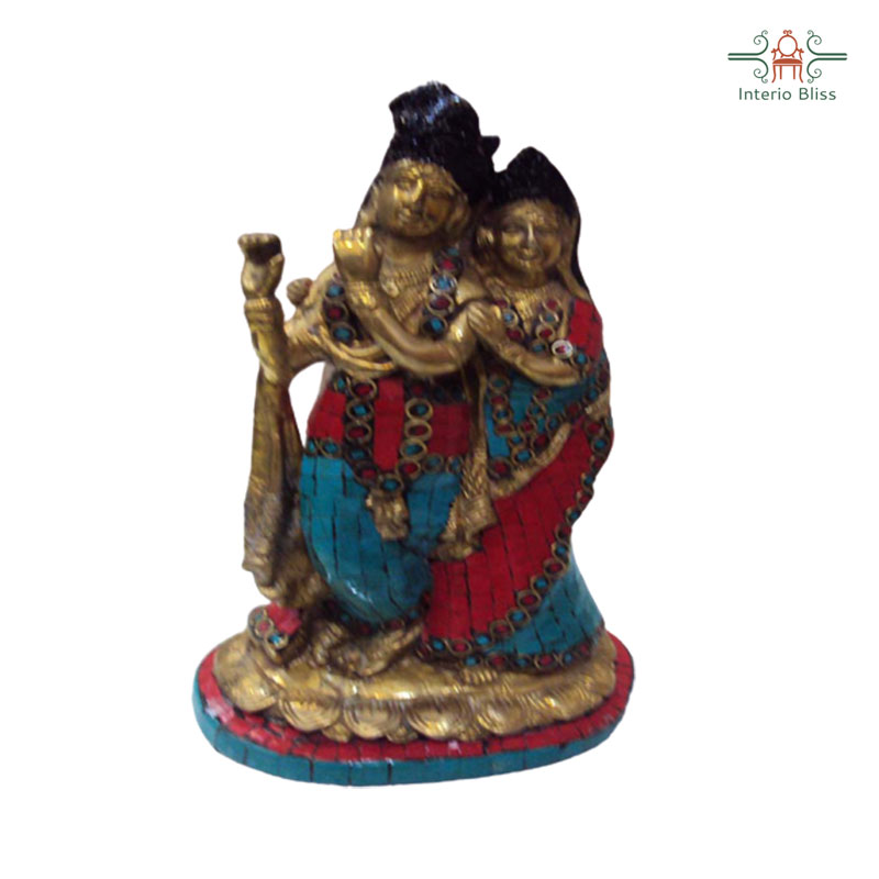 Let your interior be decorated with the profound love that flows spontaneously breaking all the disturbances that come in its path with the loving Radhakrsihna Brass Idol in colours
