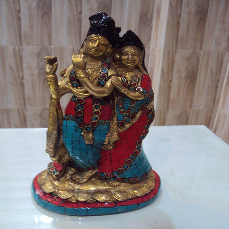 Radha krishna Brass Idol in colours