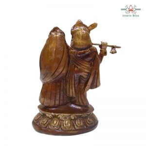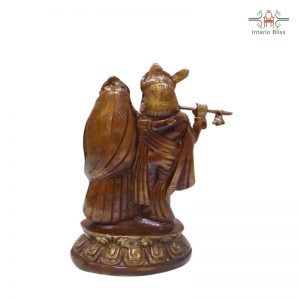 Radha-Krishna , The symbol of divine love. In this brass idol both are seen in traditional dress standing on a lotus flower like stand and Krishna playing the flute and Radha deeply listening to it.