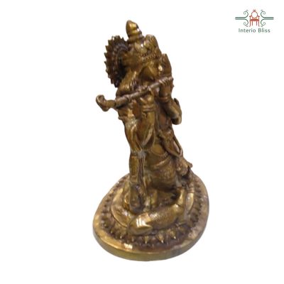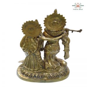Radha-Krishna , The symbol of divine love. In this brass idol both are seen in traditional dress with a crown made of cloth on head and Krishna playing the flute and Radha deeply listening to it.