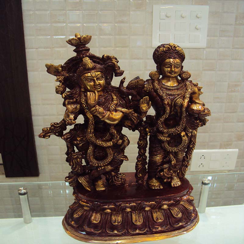 The famous symbol of divine love, Radha Krishna, in the form of the brass idol is one among the extremely fine carved and tone finished product from our store.