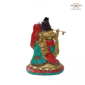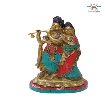 Radha-Krishna , The symbol of divine love. In this brass idol both are seen in traditional dress standing on a lotus flower like stand and Krishna playing the flute and Radha deeply listening to it.