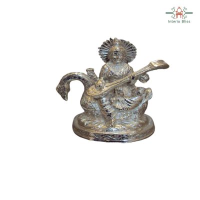 Saraswathi sitting on her vehicle the swan by holding her veena in her hand is finely decorated with traditional designs.