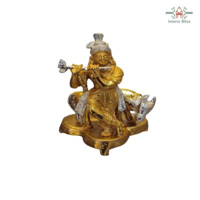 Krishna in the form of Gopala Krishna Brass Idol is having a crown made of metal brass electroplated with silver, and the head of the cow is also made of metal brass electroplated with silver,
