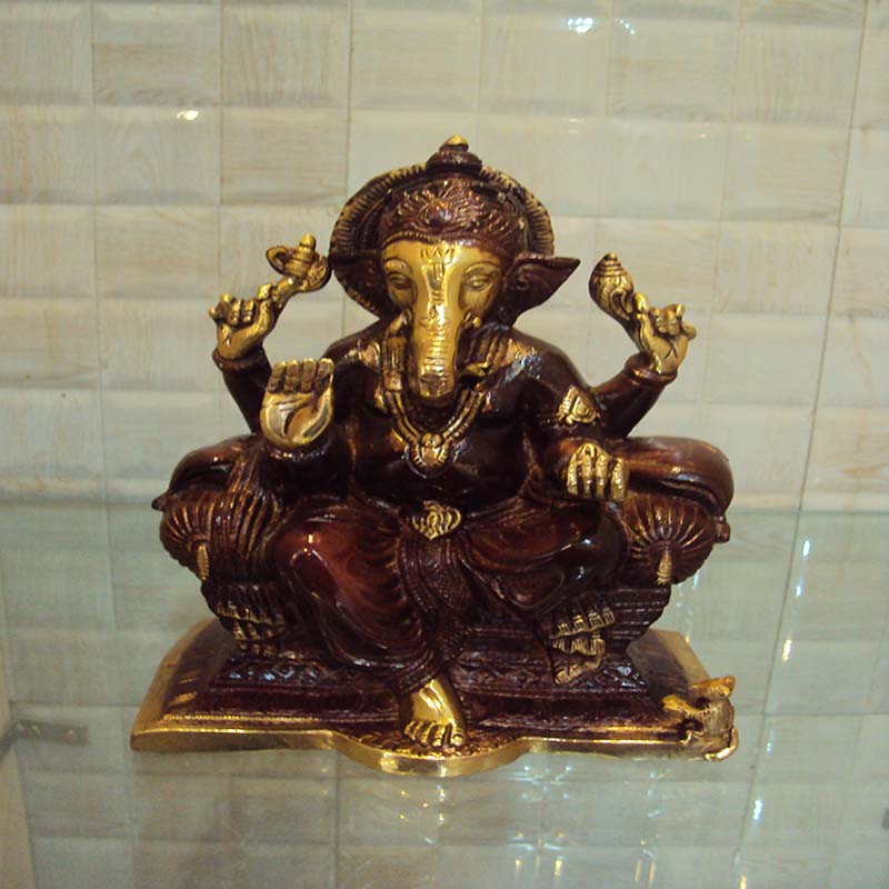 The beautiful and extremely fine hand-carved traditional designs and appropriate colour for this Ganesha Brass idol make it a perfect piece of decor to any type of interiror