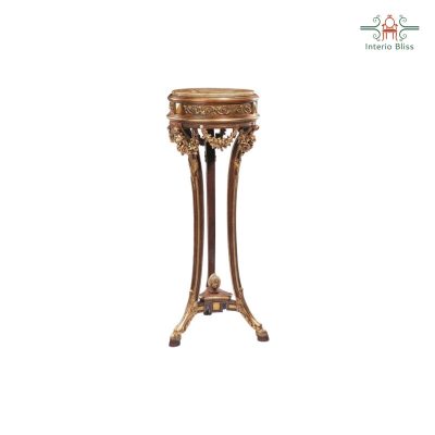The eye catching and stylish Pedestal Accentuates, round corner table with ethnic and traditional styling that enriches the beauty of your living room. The design can be matched with any decor. The table can also be used as bedside and end tables. Made of material metal and wood.
