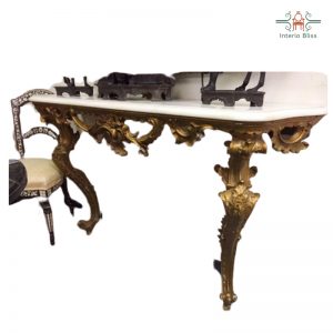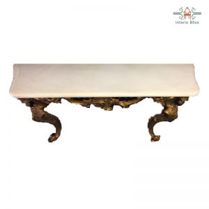 Make your dream of making your room like a royal room with this antique designed console table. The curvy four legs with traditional designs hand carved by our skilled artisans and the matching white marble top is the attracting feature of this table