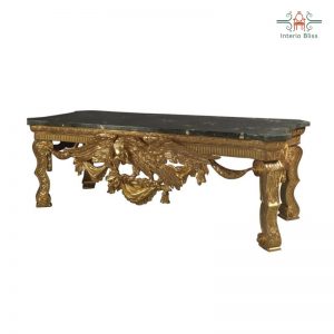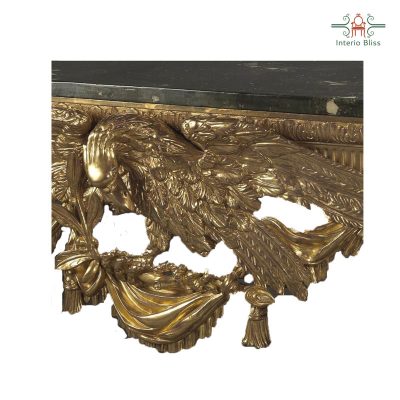 This conole table with a handcrafted designs of a bird in the front part of the table. More than a console table you can use this as a normal table to keep all your stuffs. The top of the table is made of black marble really matching with the bird design in front of the table