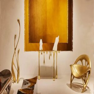 This conole table with a handcrafted designs of a bird in the front part of the table. More than a console table you can use this as a normal table to keep all your stuffs. The top of the table is made of black marble really matching with the bird design in front of the table