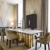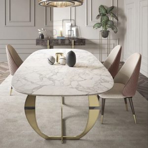 with natural marble in round and smooth corners and material metal/ stainless steel leg coated with golden colour