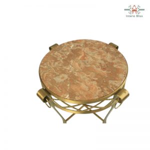 Circle marble top on a traditional hand encarved designed metal base side table