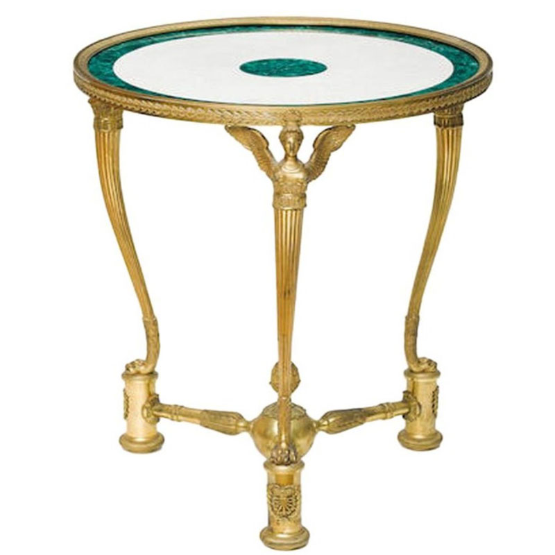 Circle marble top on a traditional hand encarved designed metal base side table