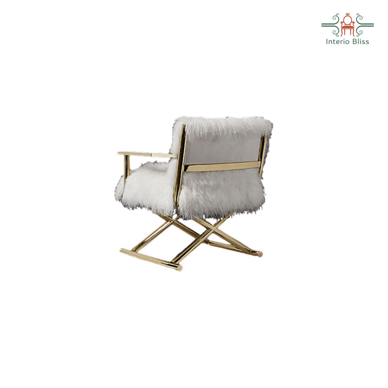 A solid, high-polish metal frame replaces the traditional wood, while upholstered cushions in Tibetan wool stand in for canvas. Wide armrests and substantial legs provide superior comfort and support.
