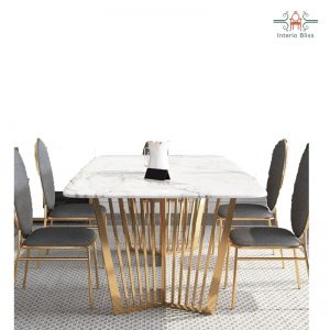 Material metal/ Stainless steel Dining Room Set with gold minimalist modern marble dining table and 6 chairs