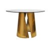 With its sculptural brass base and glass tabletop, our Dining Table blends rustic with refined to add uncomplicated style to your space.