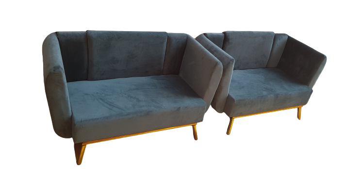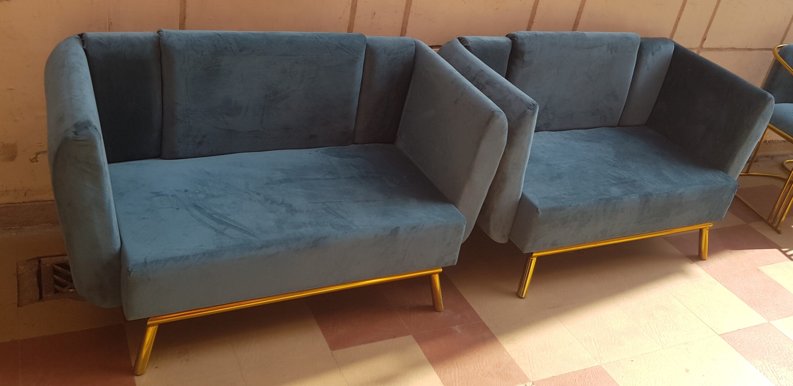 Material- Stainless steel, wooden ply board, etc. upholstery with blue velvet fabric.