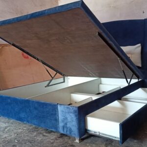 Elegant and modern design bed with two drawer at one side as easy storage and a fully lifted bed top with hydraulic as a full storage and ultra luxurious 5 feet high back.