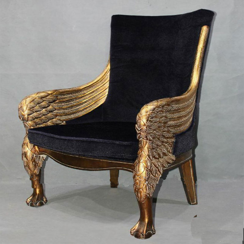 The stylish chair with flawless carvings and a finished frame gives a modern look to your home. You can use this chair for the living room, dining room and guest room. The chair features a hand-carved back, straight arms with designs , carved legs, and a padded seat and back, both wrapped in a soft fabric.