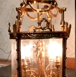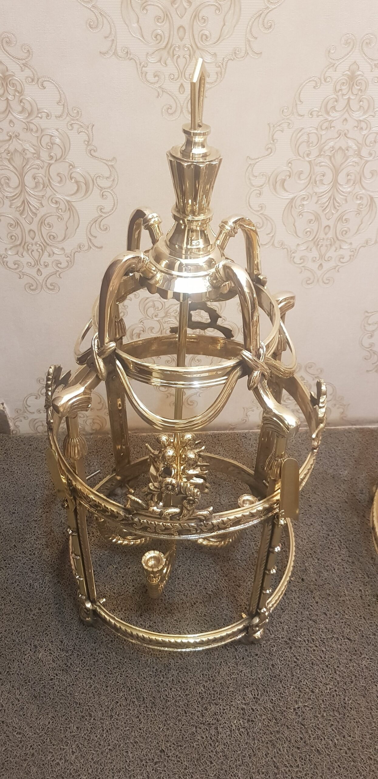 Hanging chandelier, unique and royal. From the times of royal Majesty. Hand crafted. High end metal – brass. Antique finished. Height – 36″