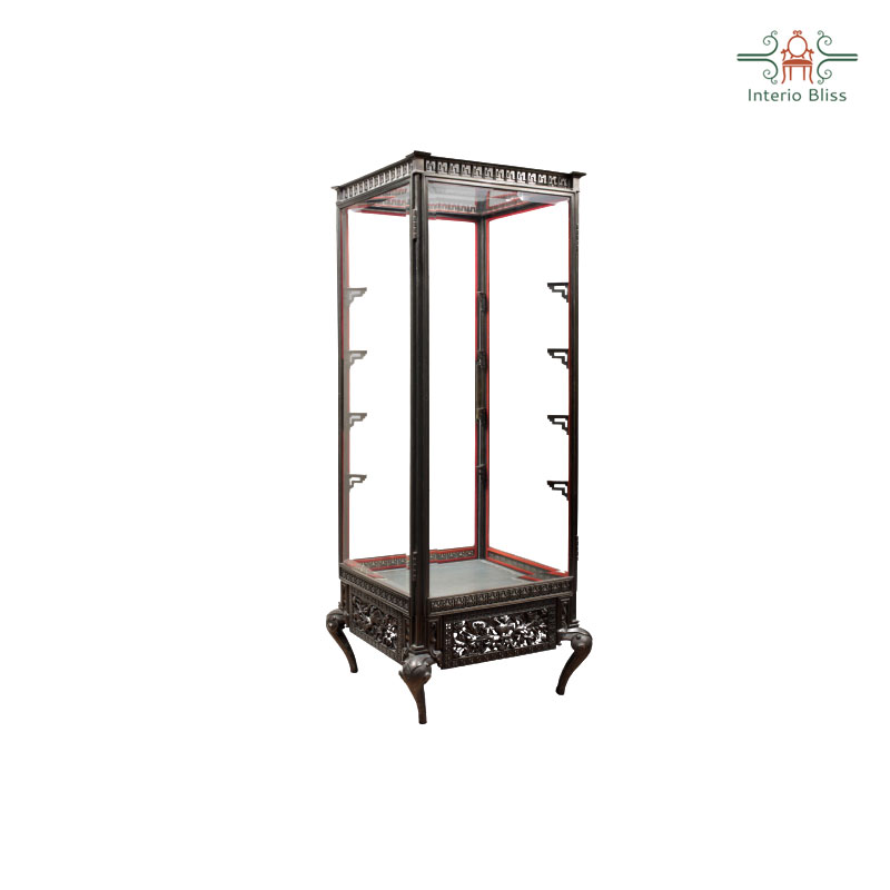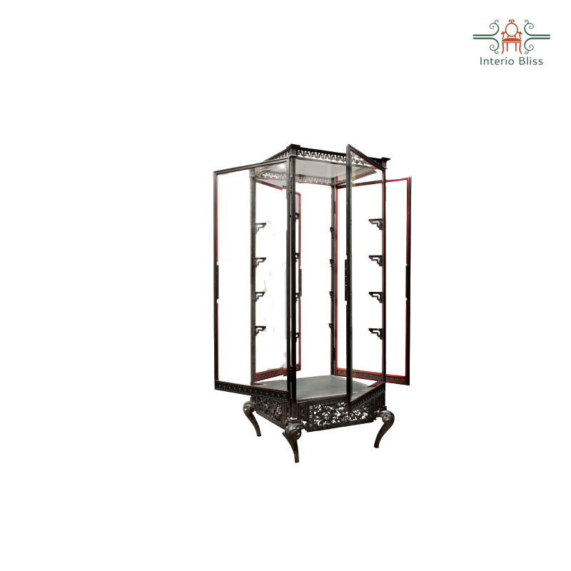 Glass plate , brass hand-carved designs on sides and down part fittings, hoof feet, length approx. 82, width 37, height 178 cm.