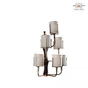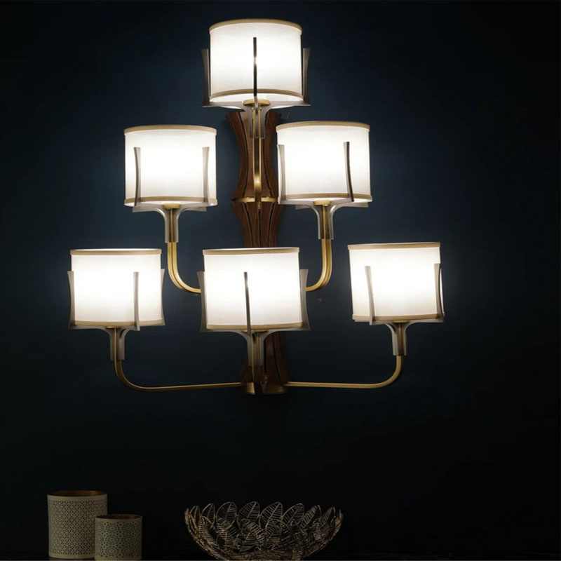 Modern style wall mounted wall lamps with a lighting area of 3-5 meters in fabric shade type, and shadow direction down having a knob switch. The body material is made of glass and metal brass.