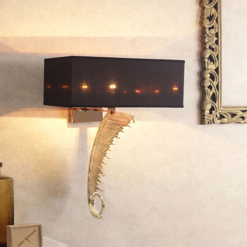 Modern style wall mounted wall lamps with a lighting area of 3-5 meters in fabric shade type, and shadow direction down having a knob switch. The body material is made of glass and metal brass.