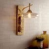 Modern style wall mounted wall lamps with a lighting area of 3-5 meters in fabric shade type, and shadow direction down having a knob switch. The body material is made of glass and metal brass.