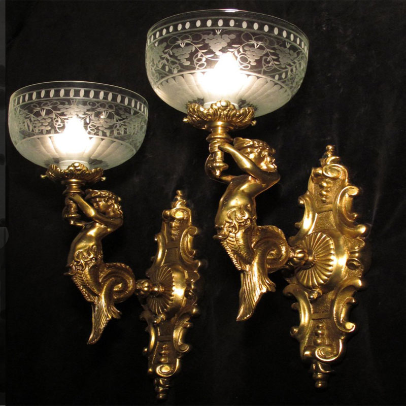 Modern style wall mounted wall lamps with a lighting area of 3-5 meters in fabric shade type, and shadow direction down having a knob switch. The body material is made of glass and metal brass.