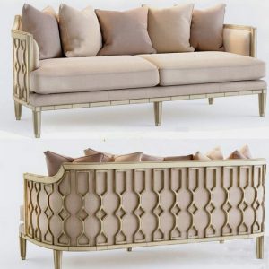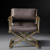 Polished brass finish Upholstered in linen with Tight seat and back cushion.
