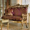 A copper blend brown/purple coloured upholstery with metal/ wood frames and legs, beayutifully hand carved with traditiona; designs by our skilled artistsans.Best use a a classic furniture to give a royal feel and look to your interior.