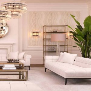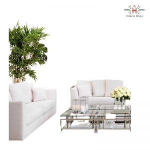 A modern sofa with arm rest on metal base giving a royal touch to the product. best suited for any interior