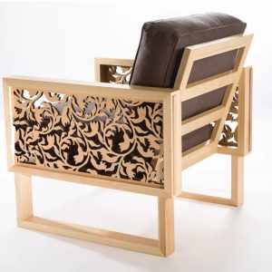 Armchair features an intricate, laser-cut design inspired by the crocus flower and is an artful addition to any environment.
