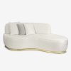 Vintage curved sofa in new upholstered green velvet, brass legs.