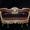 A sofa with seating capacity of 3 persons, Upholstery Material in Cotton Blend ,Upholstery Color in Brown/Purple