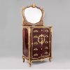 This beautiful wardrobe or storage table is made of Wood with legs that are made from stainless steel / metal, brushed gold. It features eight equal partitions inside to hold your things .There is also gold decoration around the front of it going around the edges. This piece is in wonderful condition and can be both placed in a bedroom and a hallway or living room. This lovely piece gives off luxurious and modern vibes to your interiro